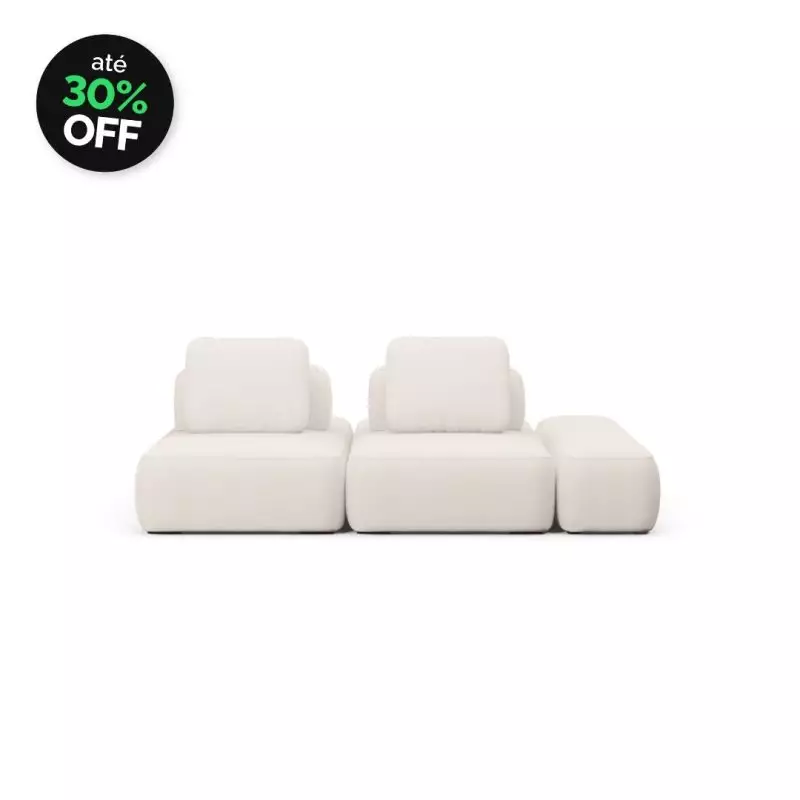 Sofá Modular Bono 2 Módulos com Puff Lateral e Encosto Solto