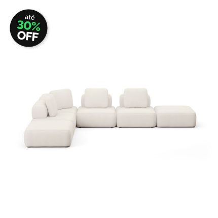Sofá Modular Bono 6 Módulos Canto Com Puff e Encosto Solto