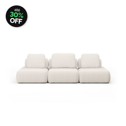 Sofá Modular Bono 3 Módulos Com Puff Lateral e Encosto Solto