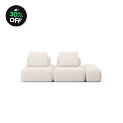 Sofá Modular Bono 2 Módulos Com Puff Central e Encosto Solto