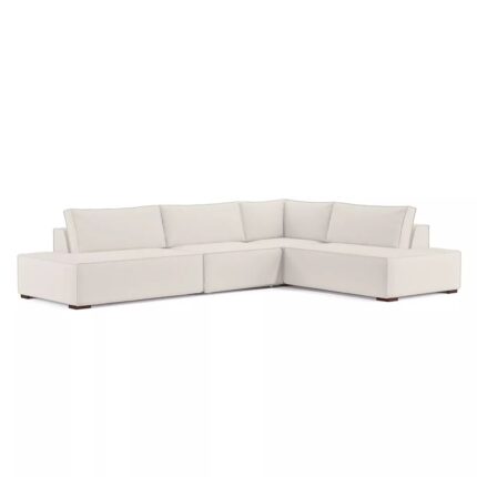 Ver em realidade aumentada 2 Assentos com término em chaise sem braço + 1 Assento fixo sem braço + 1 Assento sem braço canto/ Encosto fixo/ Almofadas soltas/ Opção de personalização de medidas, tecido, conforto e automação.