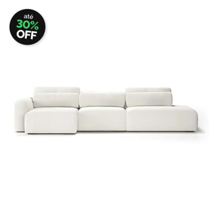 Sofá 2 Lugares Com Chaise IA Bold Com Almofadas Soltas