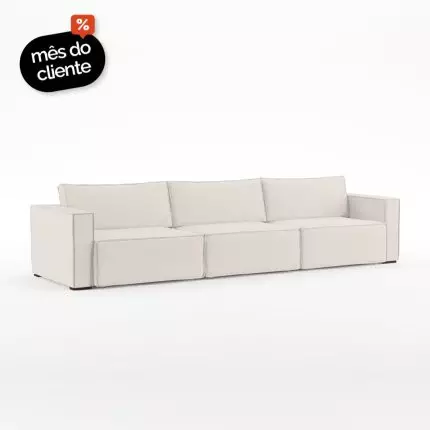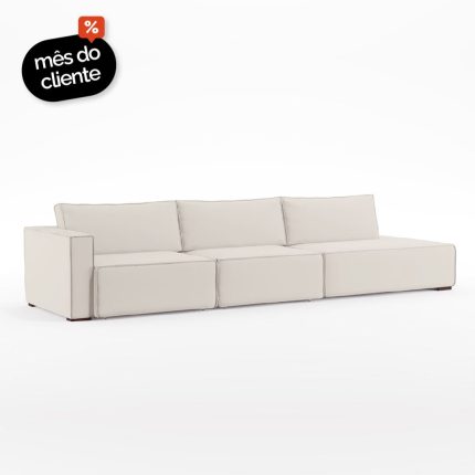 Sofá Modular Bono 3 Módulos Com Puff Lateral e Encosto Solto
