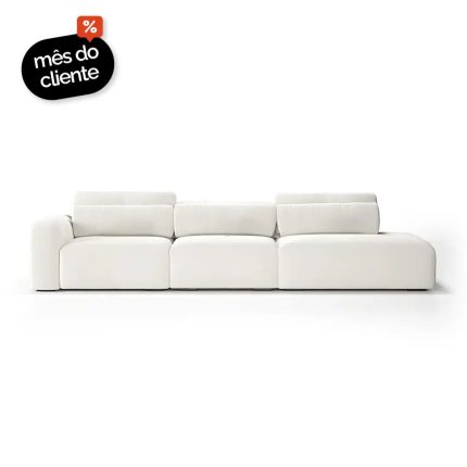 Sofá Glow 3 Lugares Com Chaise Encosto Fixo e Braço Lateral Direito 30cm