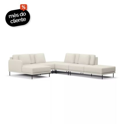 Sofá Modular Bono 6 Módulos Canto Com Puff e Encosto Solto