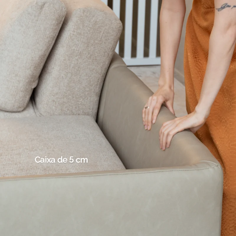 Sofá com estrutura modular, assento em espuma D40 de alta densidade que se adapta ao corpo, garantindo conforto prolongado. Encosto solto para maior flexibilidade e personalização do uso. Design com cantos arredondados que agrega leveza e sofisticação ao ambiente.