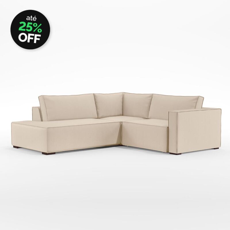 Sofá Clausi assento retrátil término em chaise braço esquerdo 2,50m