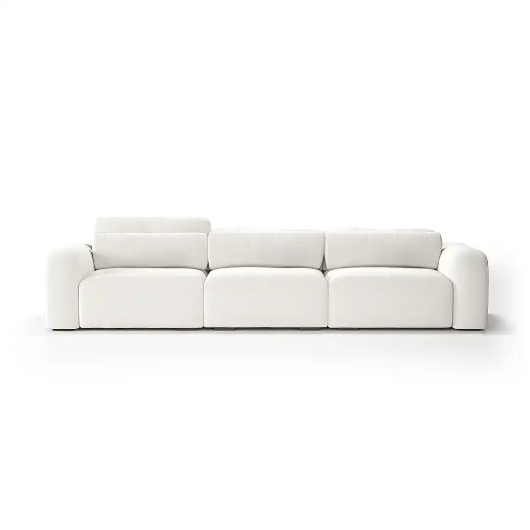 3 Módulos com assentos retráteis/ Encosto reclinável/ Opção de personalização de medidas, tecido, conforto e automação.
