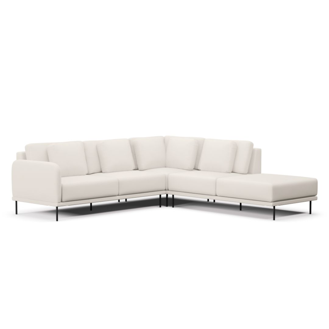 Escolha entre modulações de canto, chaise ou com puff, adaptando o sofá às suas necessidades e estilo, para um conforto personalizado.