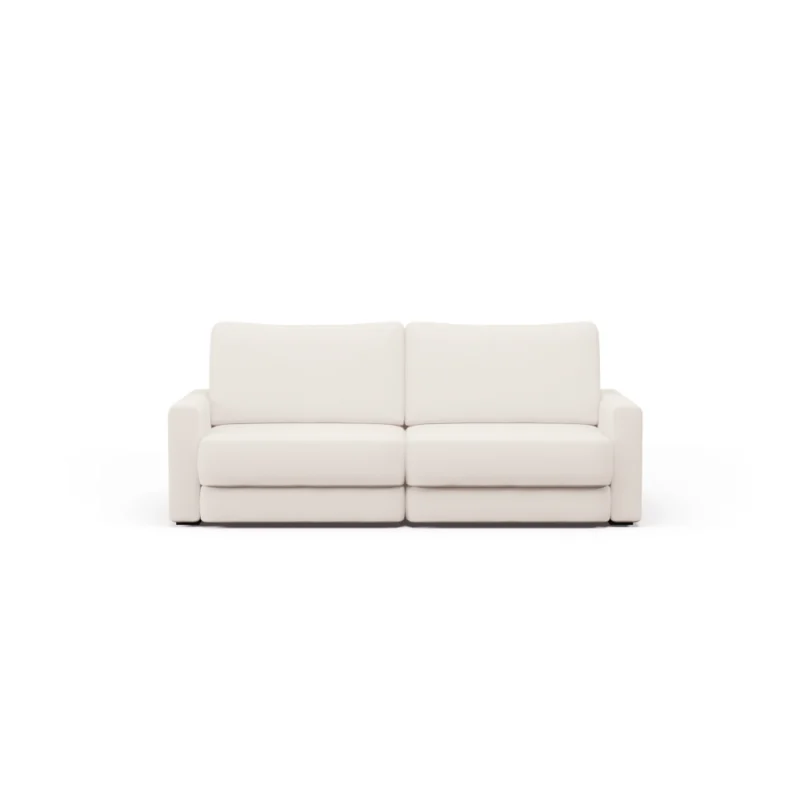 2 Assentos retráteis/ Encosto fixo/ Almofadas soltas/ Opção de personalização de medidas, tecido, conforto e automação.