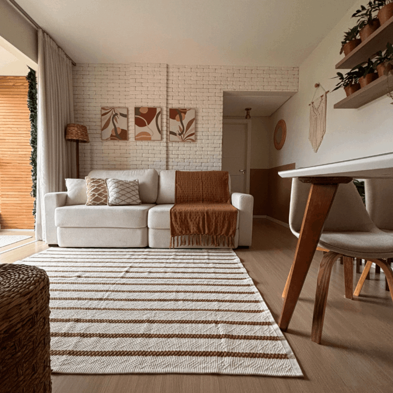 "Nós amamos demais o sofá, tudo nele é lindo além de ser mega confortável! O acabamento é de primeira, o tecido e cor são perfeitos, enfim estamos super satisfeitos com nosso sofá adquirido na Soft."