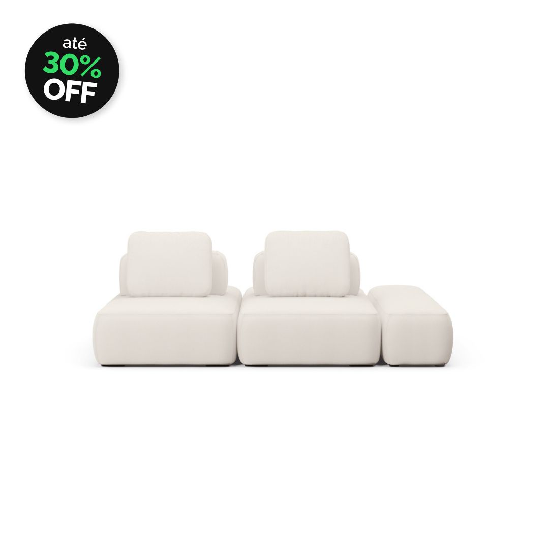 Sofá Modular Bono 3 Módulos Com Puff Lateral e Encosto Solto