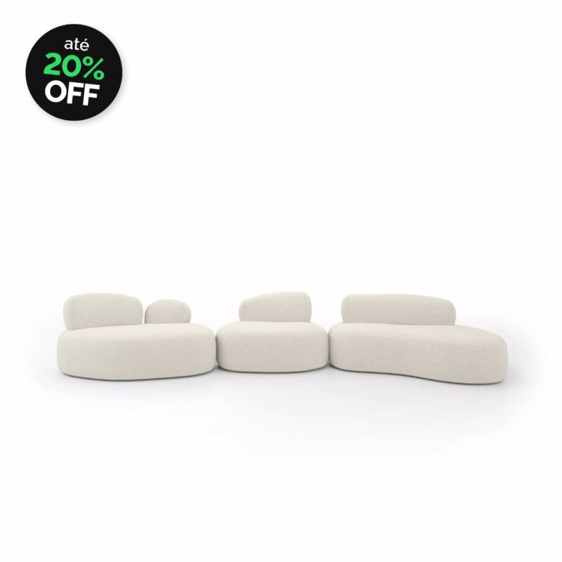 Sofá IA Bean Orgânico 3 Módulos Com Chaise