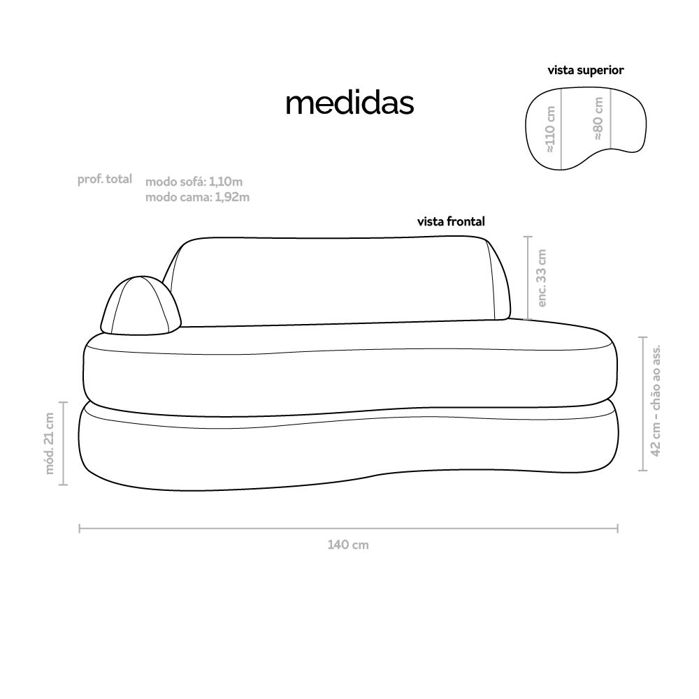 módulos, encosto e braço soltos, sem perder a estabilidade na hora de utilizar o sofá-cama