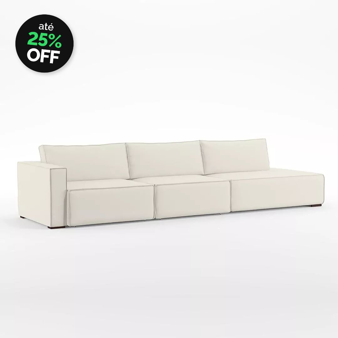 Sofá Modular Bono 3 Módulos Com Puff Lateral e Encosto Solto