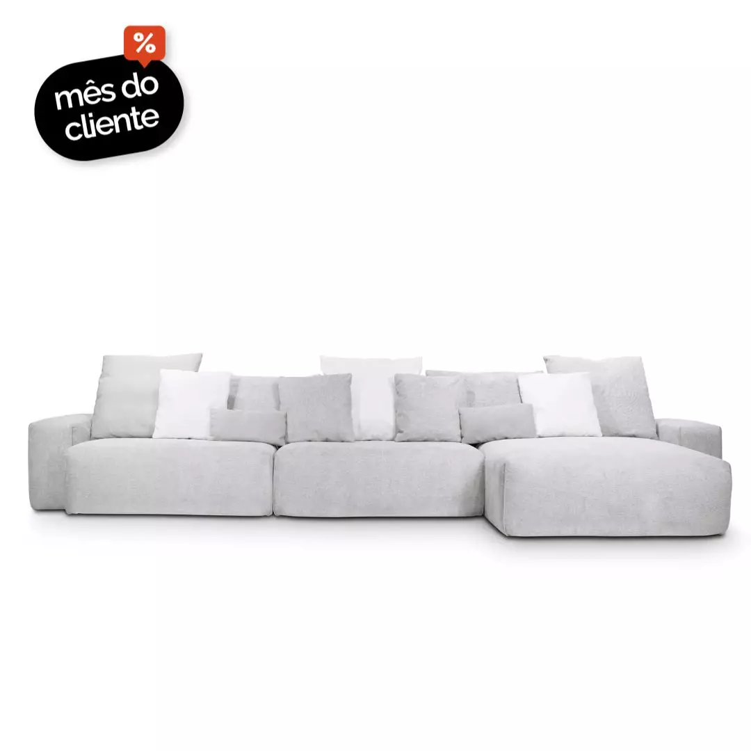 Sofá Glow 4 Lugares Assento em Chaise Encosto Fixo e Braço 20cm