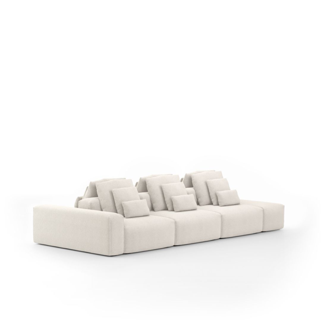 3 Módulos com assentos fixos e braço lateral direito de 30cm / Encostos ajustáveis / 6 Almofadas / Opção de personalização de medidas, tecido e conforto