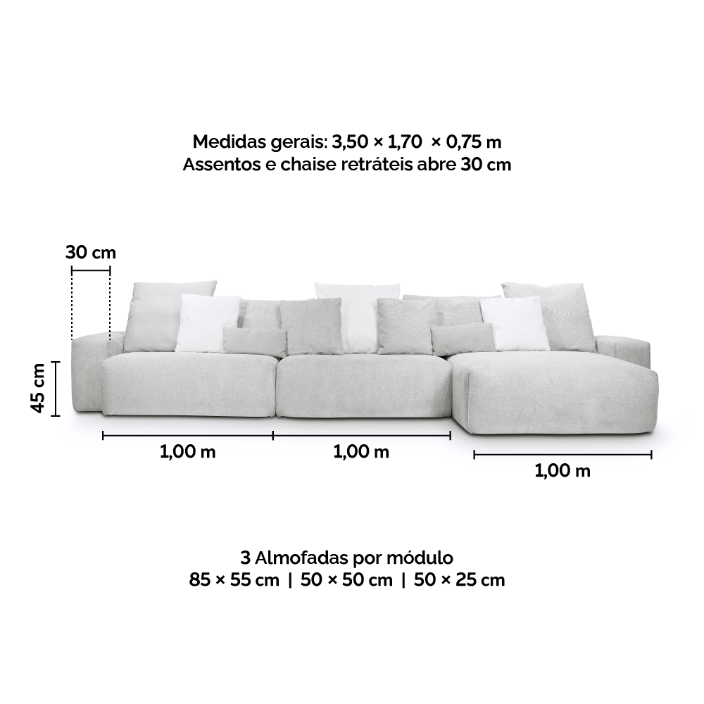 Sofá Glow 3,60m com chaise