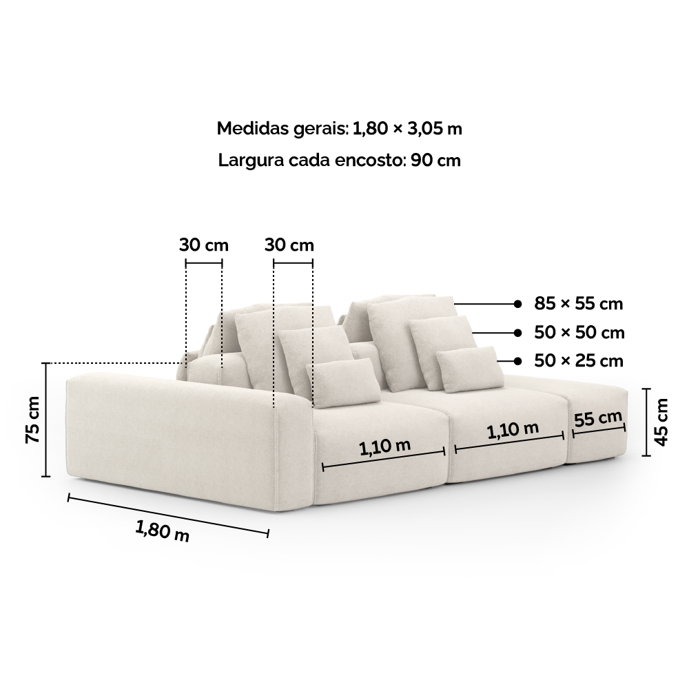 | Conforto do assento | Flutuante (molas ensacadas + espuma D32 Soft + manta siliconada 400g) |
