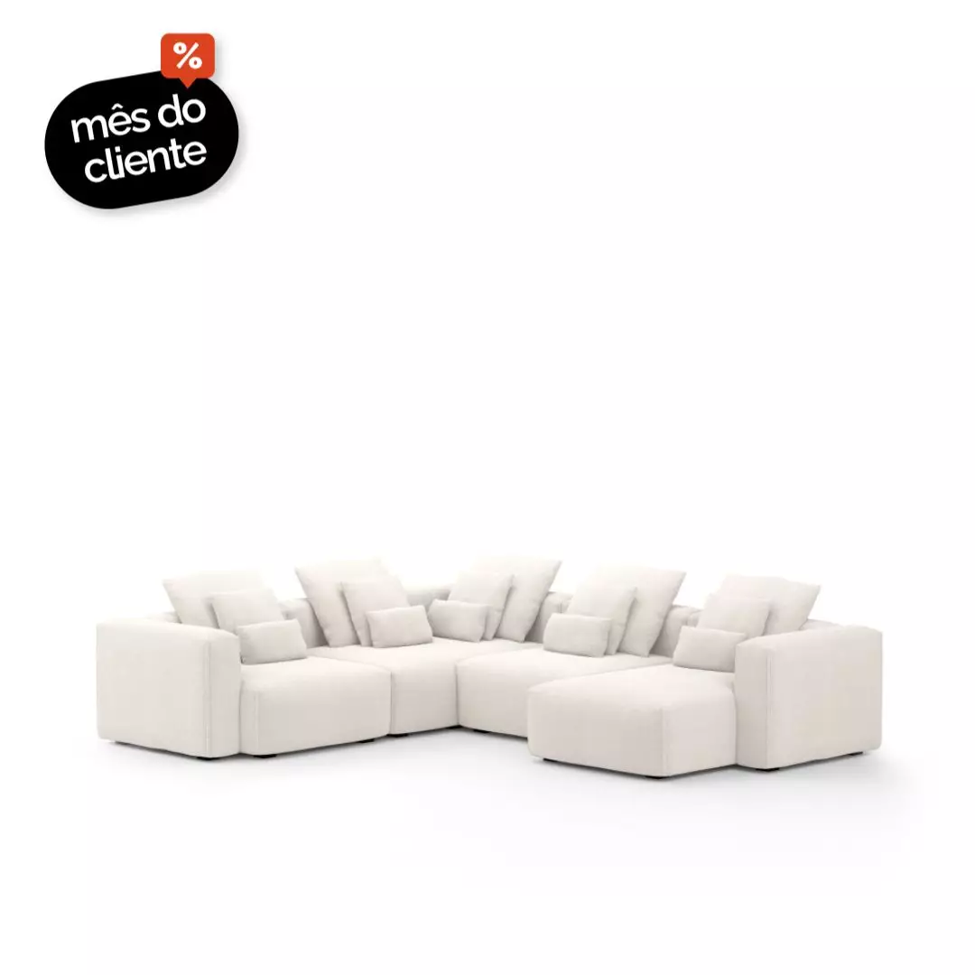 Sofá Glow 4 Lugares Assento em Chaise Encosto Fixo e Braço 30cm