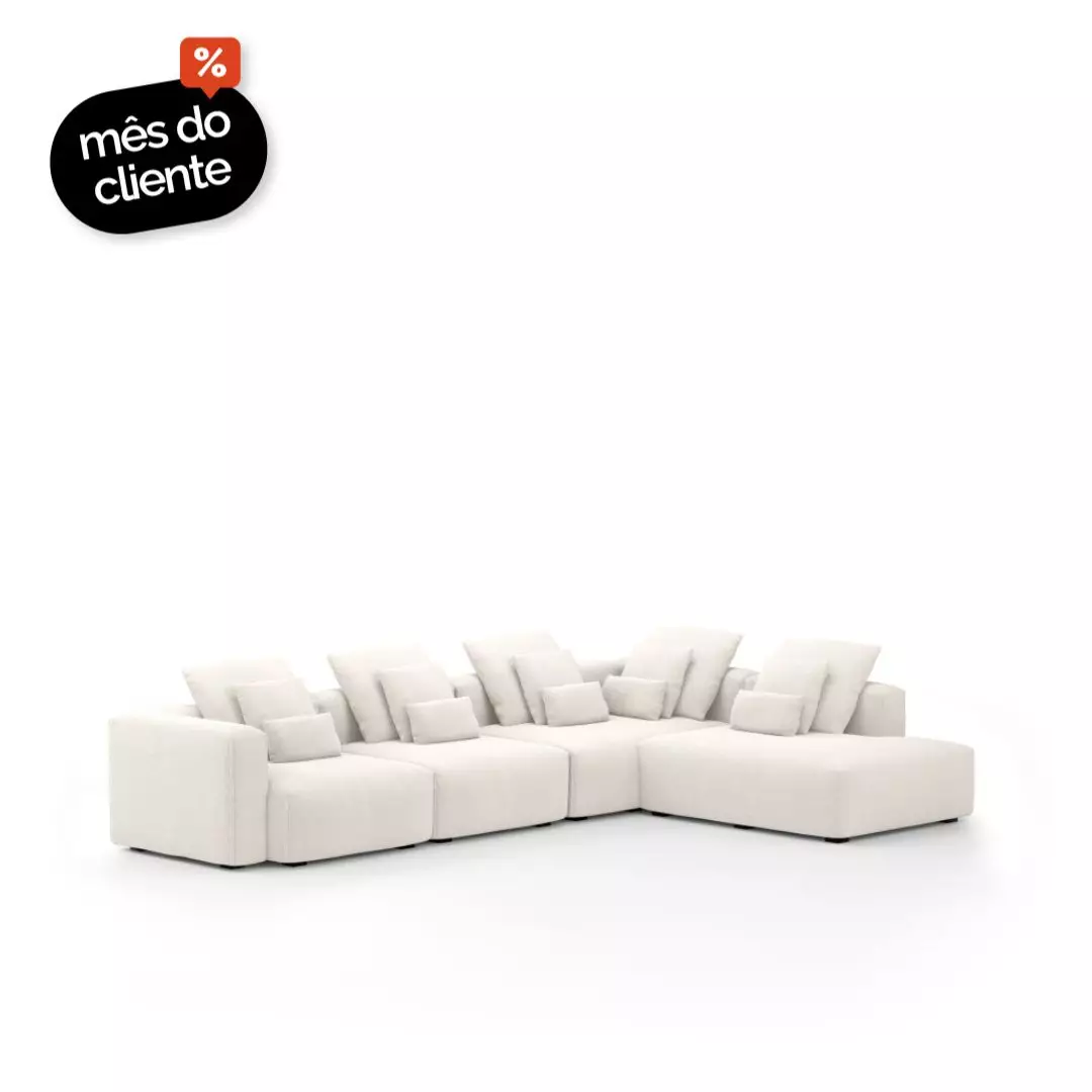 Sofá Modular Bono 3 Módulos Com Puff Lateral e Encosto Solto