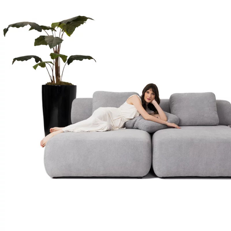 Sofá Modular Bono 3 Módulos Com Puff Lateral e Encosto Solto