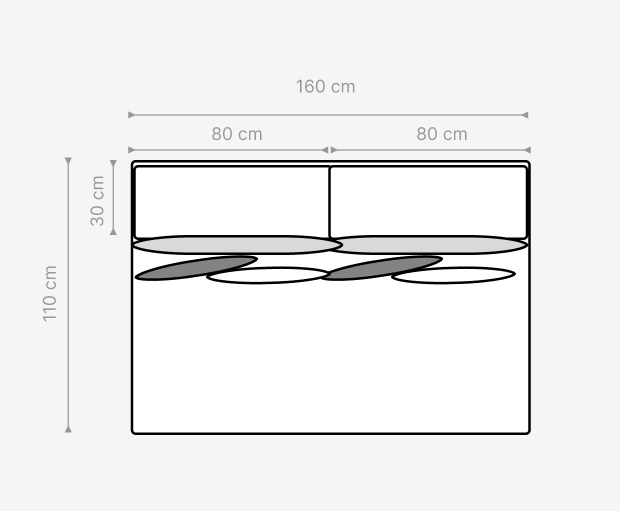 1 Módulo com assento fixo sem braço / 2 Encostos soltos / 6 Almofadas / Assento flutuante