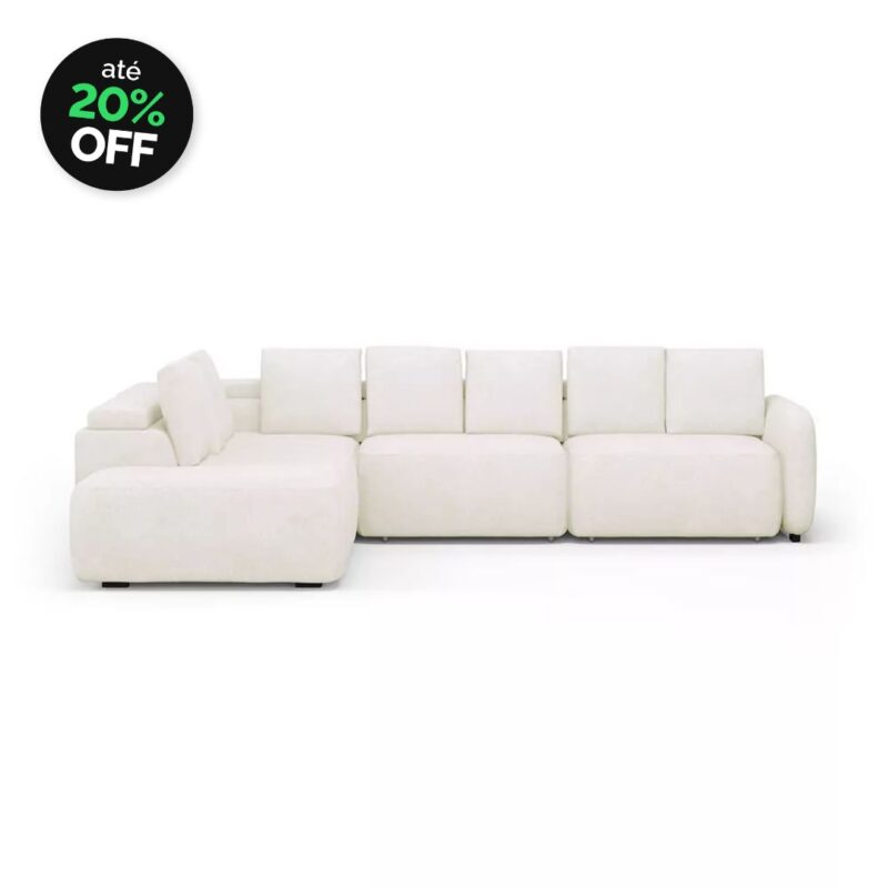 Sofá Glow Ilha Com Puff Lateral e Encosto Automático