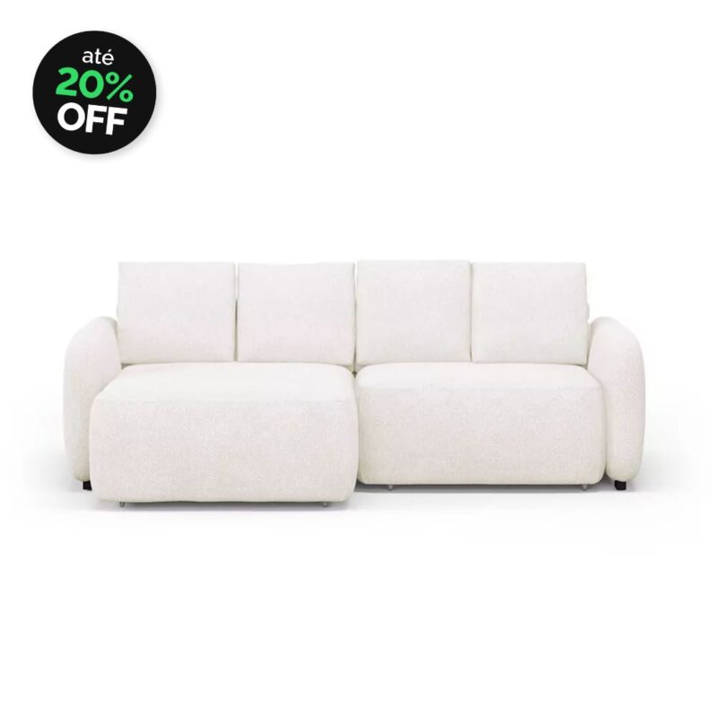 Sofá Glow 3 Lugares Com Chaise Encosto Fixo e Braço Lateral Direito 30cm