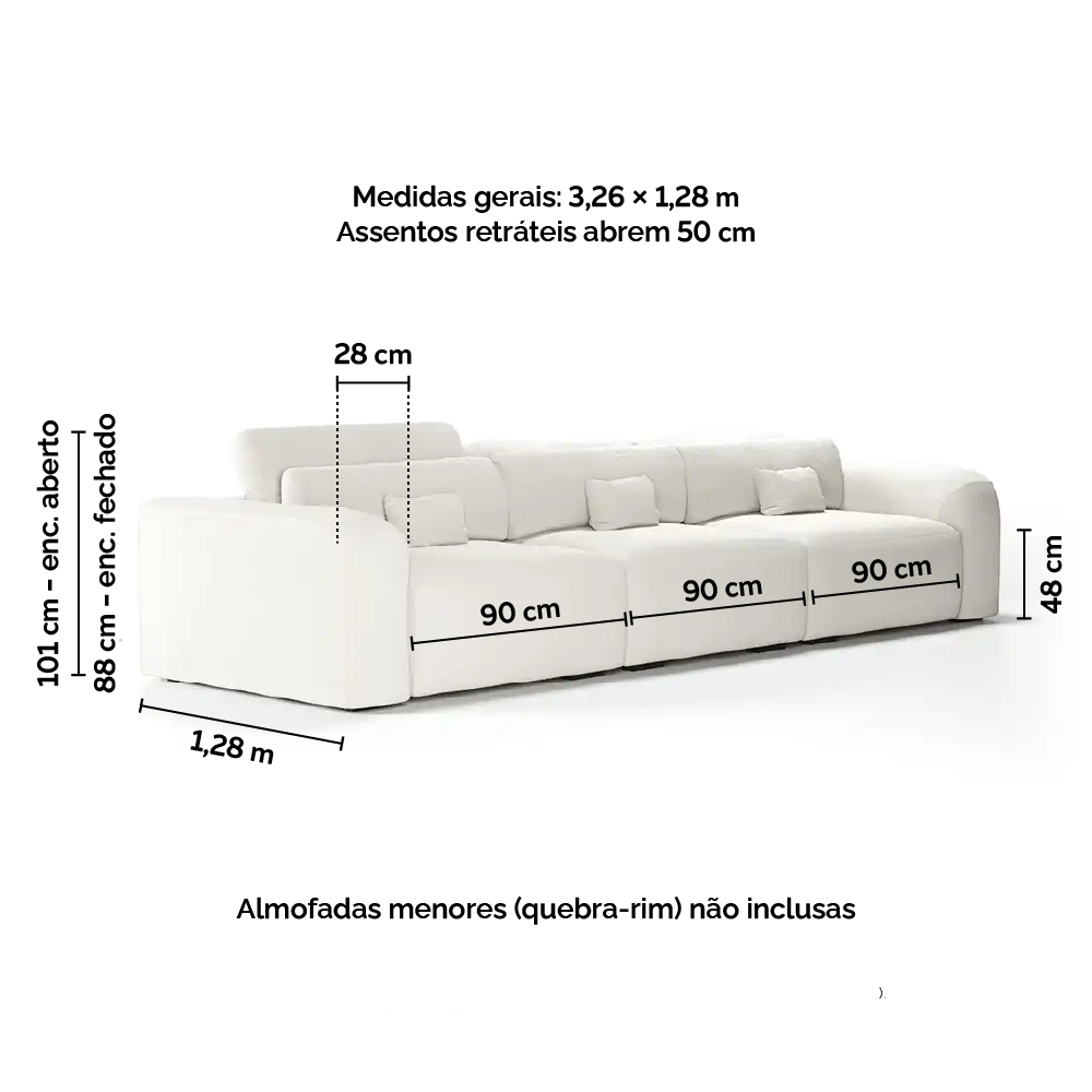 Largura total do sofá 3,26m