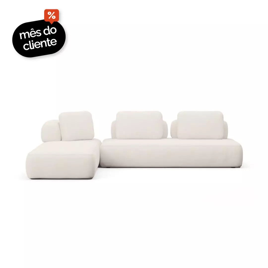 Sofá Modular Bono 2 Módulos Com Assento em Chaise e Encosto Solto