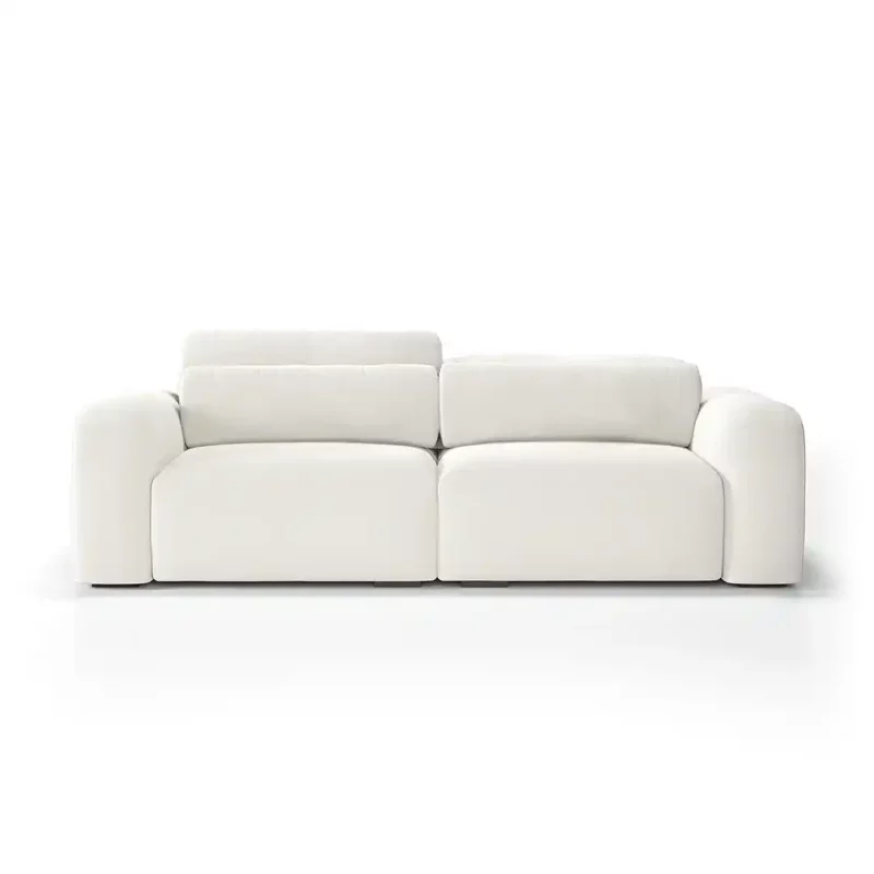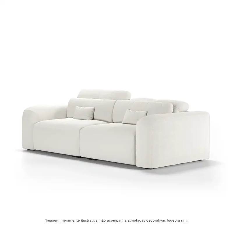 Sofá com estrutura modular, assento em espuma D40 de alta densidade que se adapta ao corpo, garantindo conforto prolongado. Encosto solto para maior flexibilidade e personalização do uso. Design com cantos arredondados que agrega leveza e sofisticação ao ambiente.