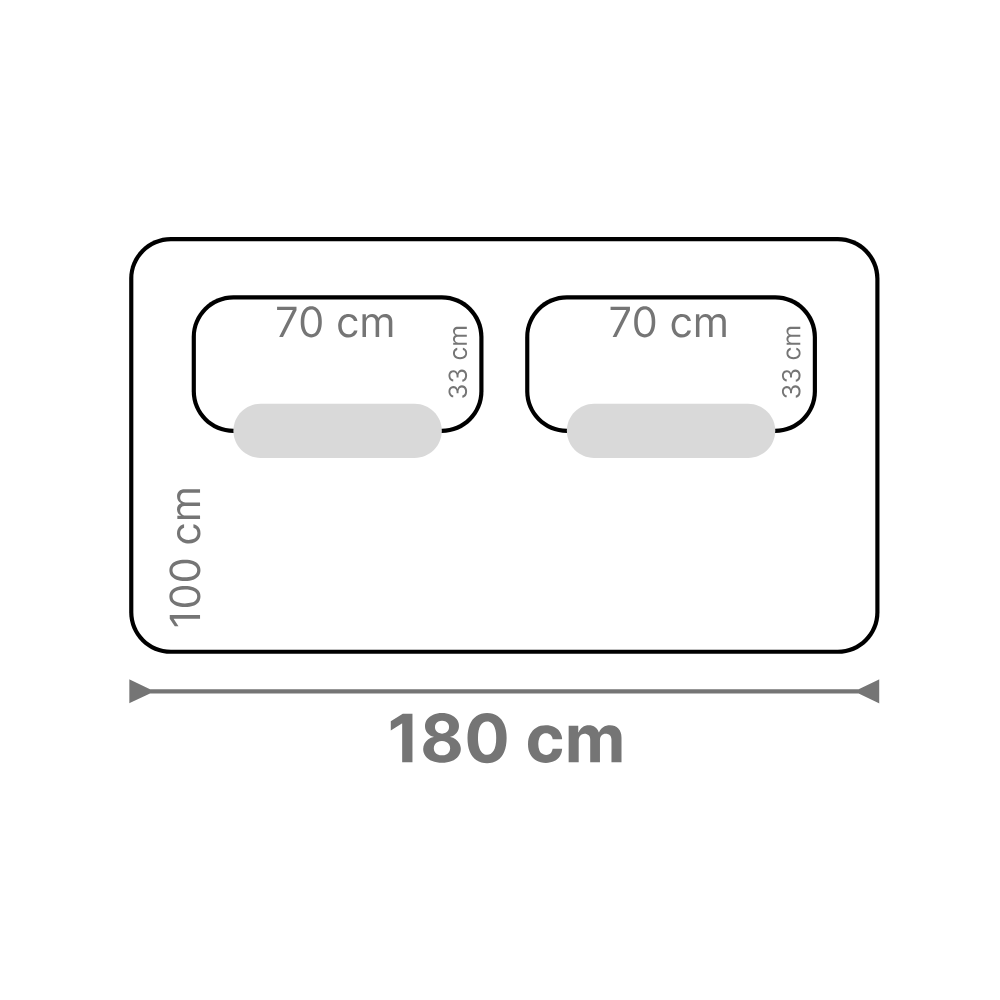 1 Módulo de 1,80m sem braço/ 2 Encostos soltos de 70cm