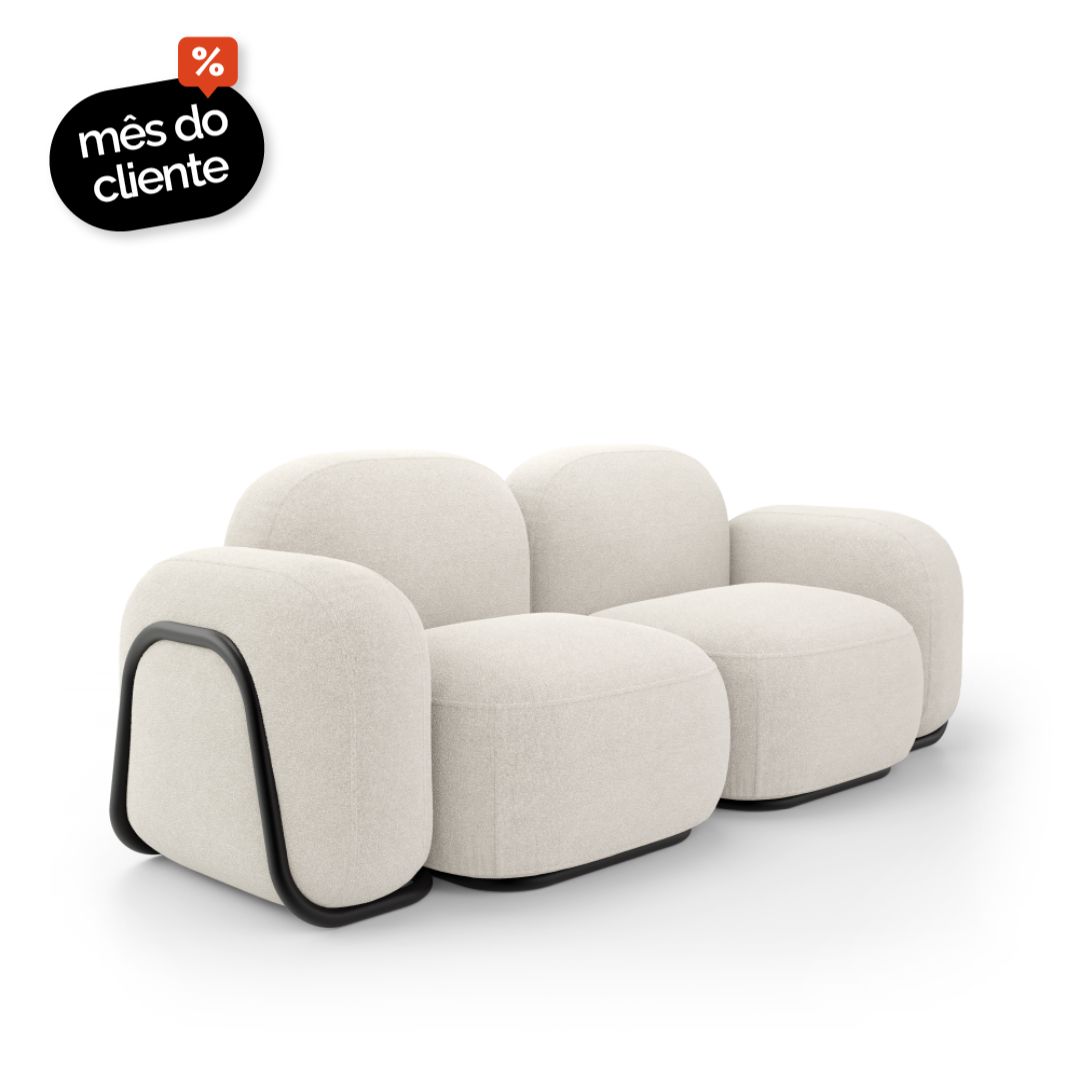 Sofá com estrutura modular, assento em espuma D40 de alta densidade que se adapta ao corpo, garantindo conforto prolongado. Encosto solto para maior flexibilidade e personalização do uso. Design com cantos arredondados que agrega leveza e sofisticação ao ambiente.