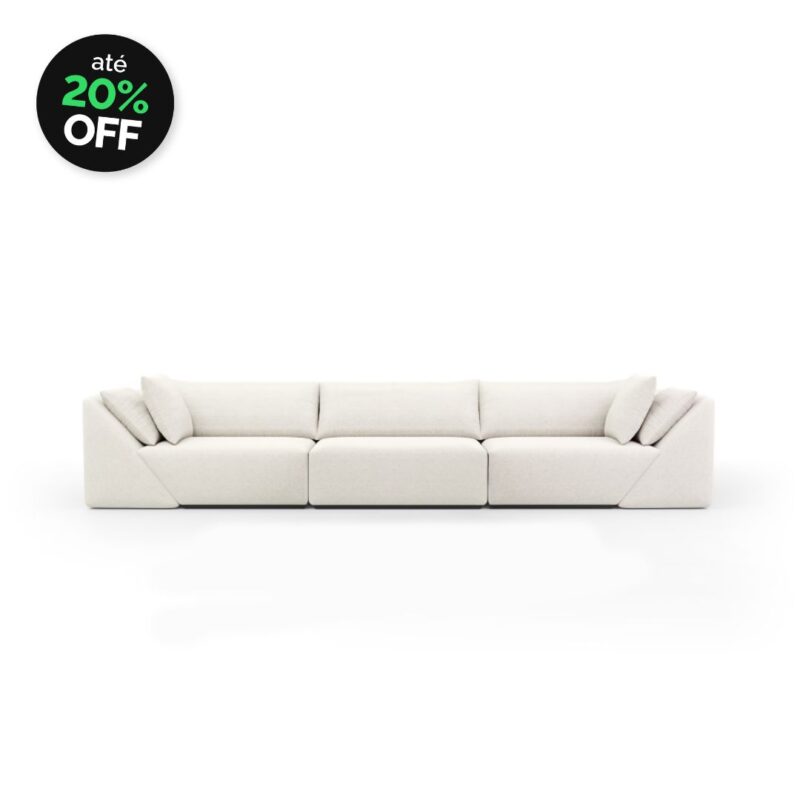 Sofá com estrutura modular, assento em espuma D40 de alta densidade que se adapta ao corpo, garantindo conforto prolongado. Encosto solto para maior flexibilidade e personalização do uso. Design com cantos arredondados que agrega leveza e sofisticação ao ambiente.