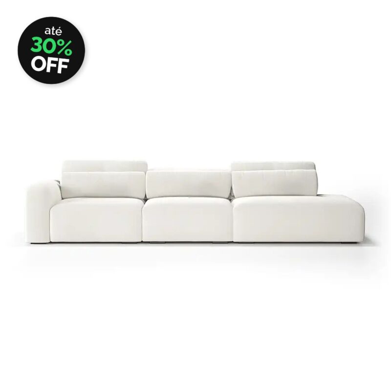 Sofá Glow 4 Lugares Assento em Chaise Encosto Fixo e Braço 30cm