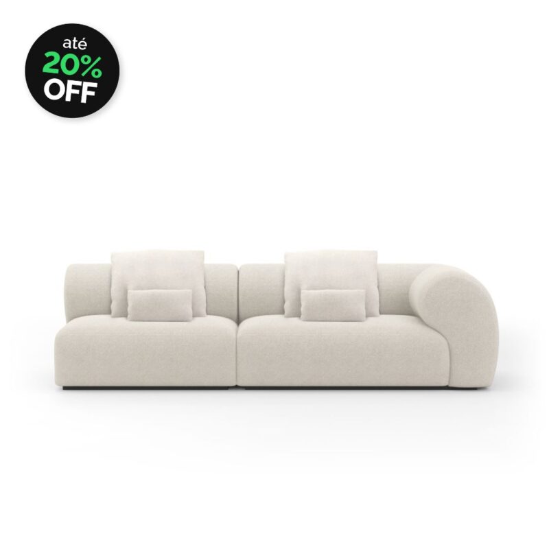 2 Assentos fixos/ Encosto fixo/ Almofadas soltas/ Opção de personalização de medidas, tecido, conforto e automação.