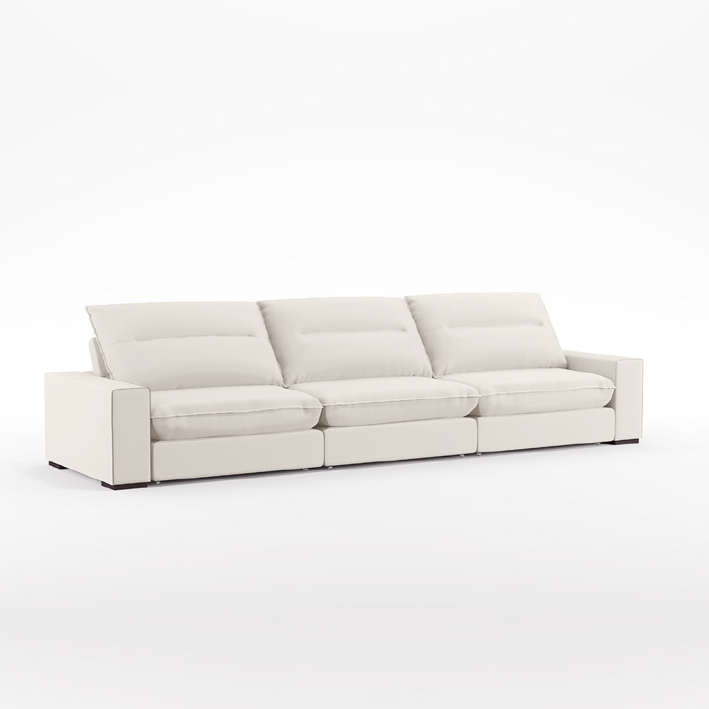 2 Assentos retráteis com braço + 1 Assento retrátil sem braço + 1 Assento com término em chaise/ Encosto fixo/ Almofadas soltas/ Opção de personalização de medidas, tecido, conforto e automação.
